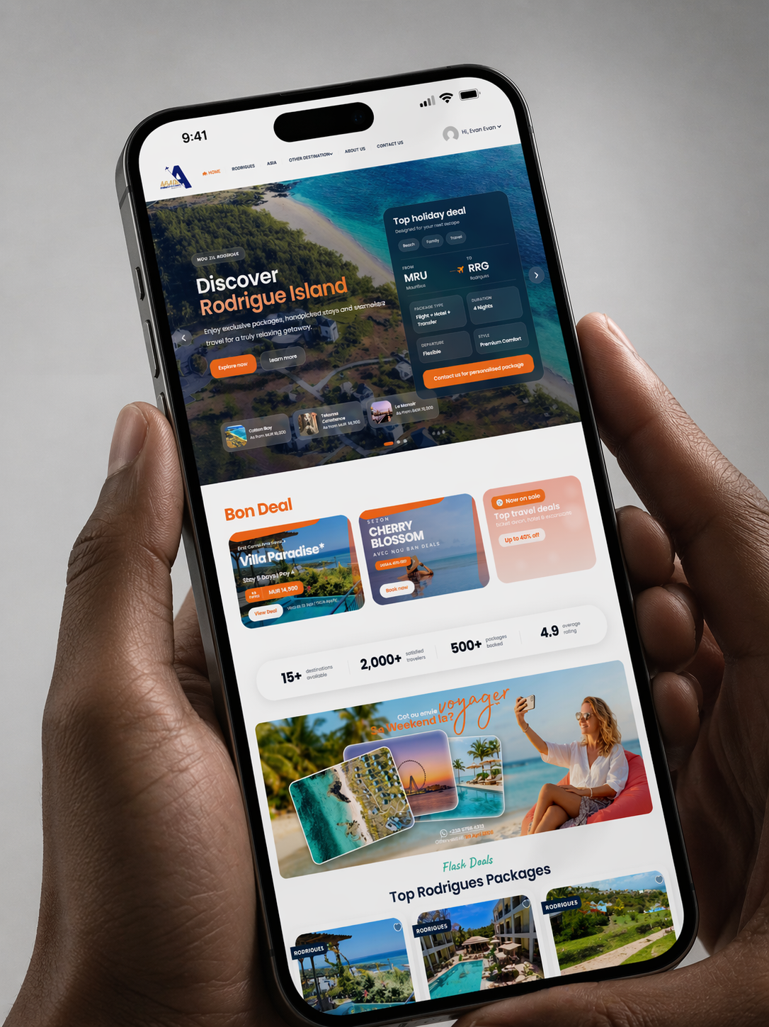 A high-converting travel website design with package cards, booking flow, destination visuals and smooth user journey.